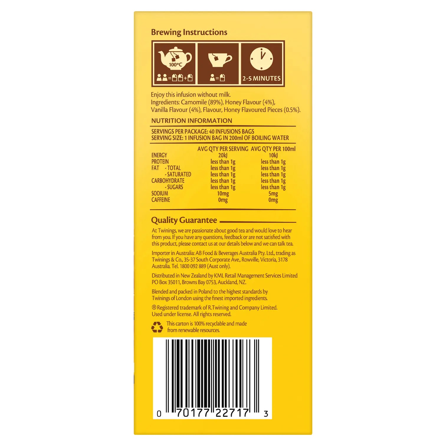 The slightly sweet and floral notes from 100% sustainably sourced camomile balanced with gorgeously rich honey flavour and hint of vanilla flavour in this infusion is sure to satisfy.