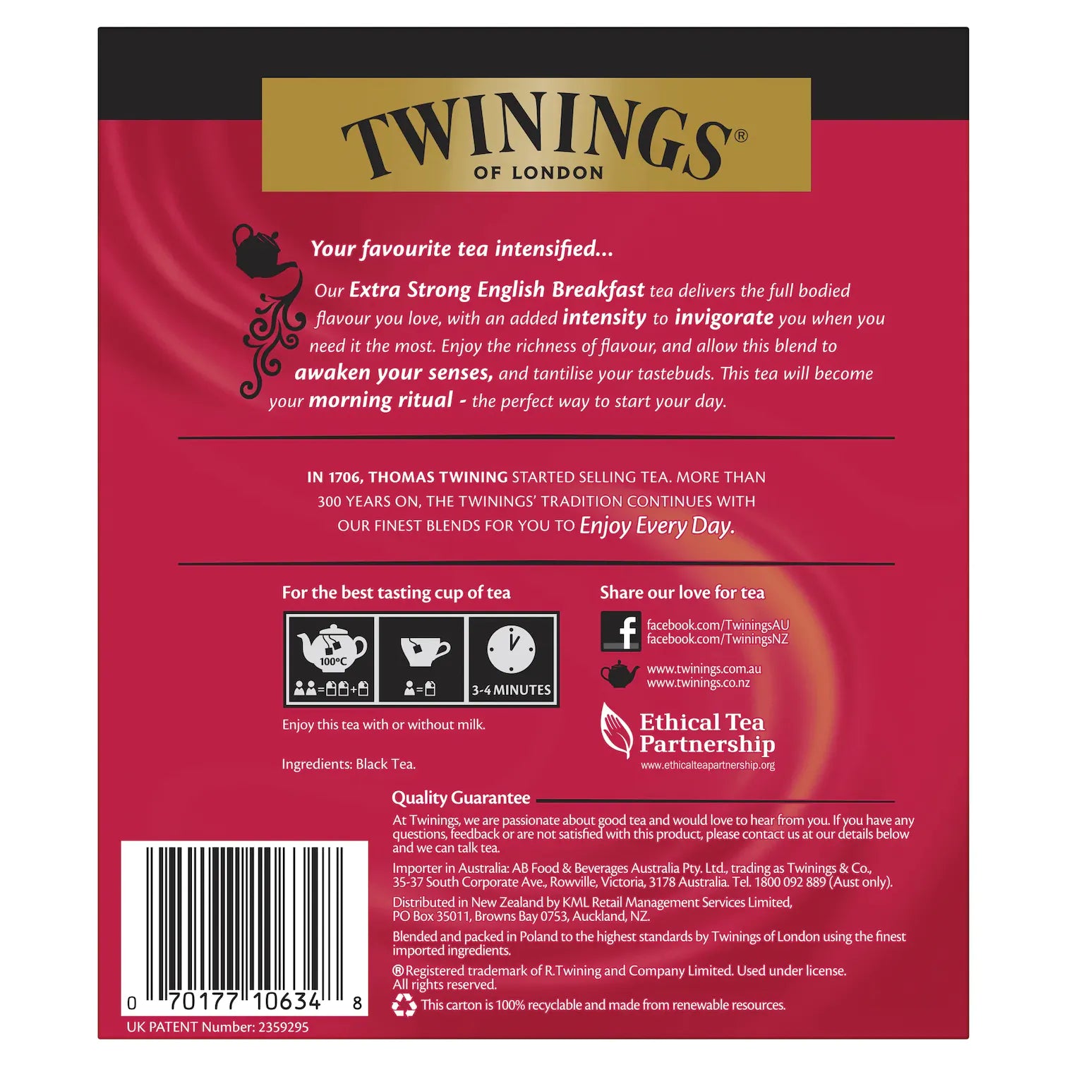We’ve carefully crafted this blend with teas known for their strength, like full-bodied Assam and bold East African teas, for you to enjoy every day.